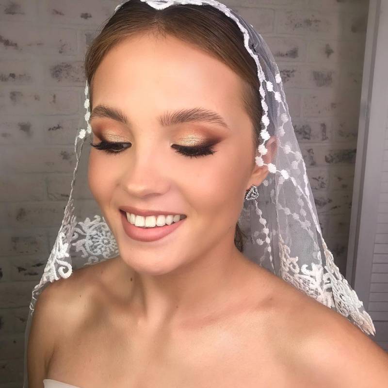 Для создания естественного макияжа невесте следует использовать светлые оттенки, такие как бежевый, песочный, розовый или персиковый, и нежный блеск для губ.