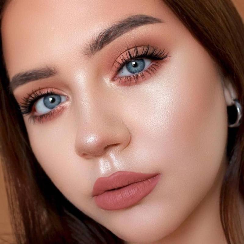 Темные волосы и голубые глаза — это редкая и очень красивая комбинация. Визажисты в таком случае рекомендуют максимально сохранить естественность и сделать образ выразительным.