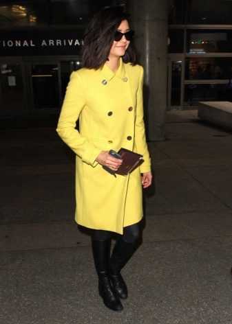 Актриса демонстрирует прекрасное умение гармонично сочетать в своем гардеробе как пальто классических оттенков, так и смелые яркие вариации.