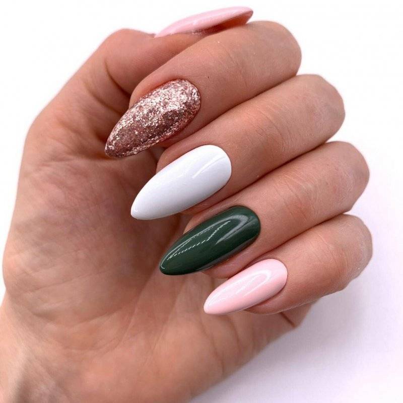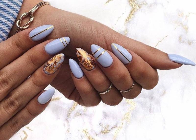 По названию видно, что речь идет о форме миндального ореха – овальной и слегка вытянутой. Длина ногтя может быть любой, но лучше всего маникюр смотрится, когда свободный край и ногтевое ложе равны по размеру. Основное отличие формы миндаль от овала заключается в заостренном кончике. Ногти такого типа требуют аккуратного и бережного ухода. По цветам и оттенкам никаких ограничений нет.