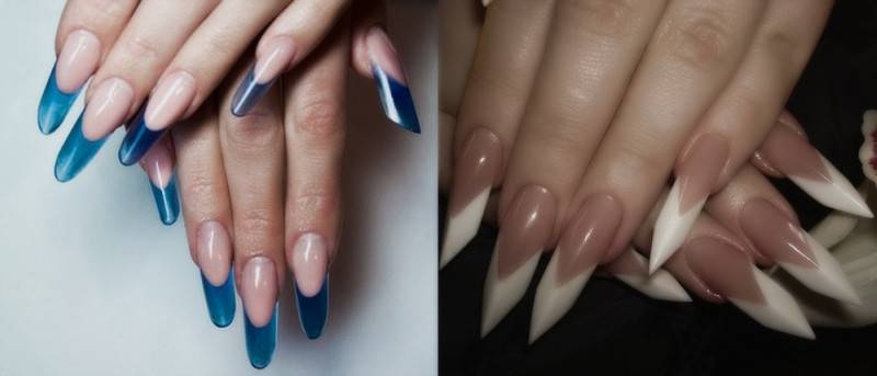 Значительно реже встречаются ногти в форме угла с симметричным спилом, пики – с сильно заостренным кончиком, Эйдж (лезвие) – с четким остроконечным ребром в середине ногтевой пластины, которая становится объемной.