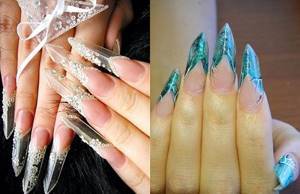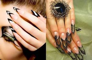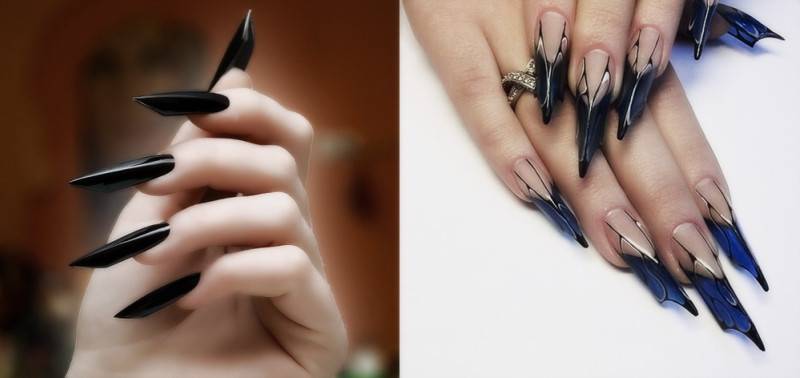 Это интересно! Стилет очень похож на кошачий коготь, но вторая форма отличается изогнутостью и легче ломается. Фото острых нарощенных ногтей покажет вам отличия.