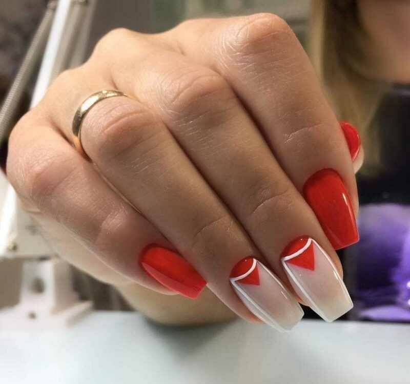 Это универсальный вид маникюра, когда нарощенные пластины получаются легкими, прочными и красивыми. Она отличается наличием прямого ребра вдоль середины ногтевой пластины, которое разделяет ее на две грани, и перпендикулярных боковых краев. Особенного привлекательно выглядит френч, который благодаря замысловатым очертаниям выглядит треугольным. За прочность в таком маникюре отвечает жесткая серединная грань.