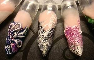 Эта не совсем привычная форма при всей своей нестандартности все же тщательно разработана и продумана. Оказывается, такой дизайн делает ногти необычайно прочными и долговечными. Чтобы сделать эйдж, применяют и готовые формы типсов (причем это значительно облегчает работу мастера), и бумажные заготовки-шаблоны. Последний вариант может быть для мастера несколько проблематичным при обработке ногтя.