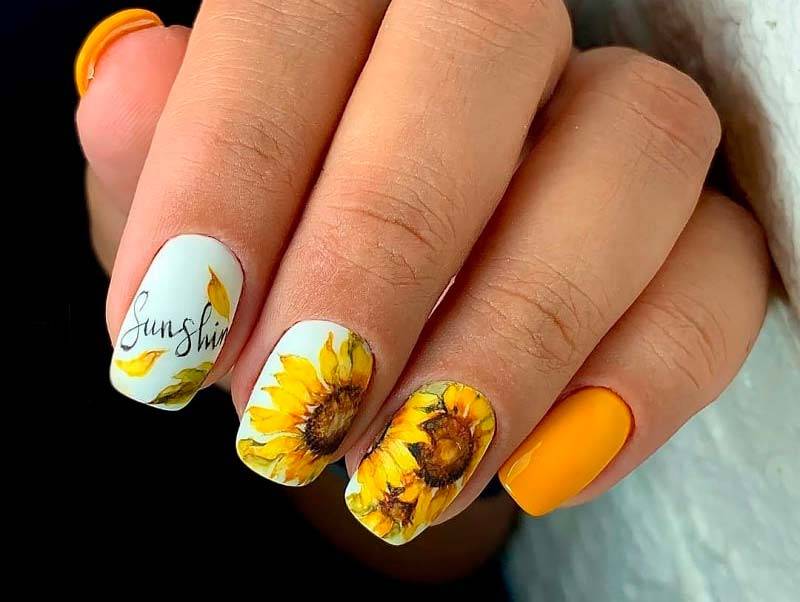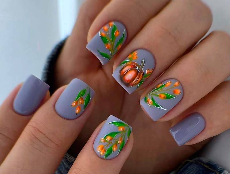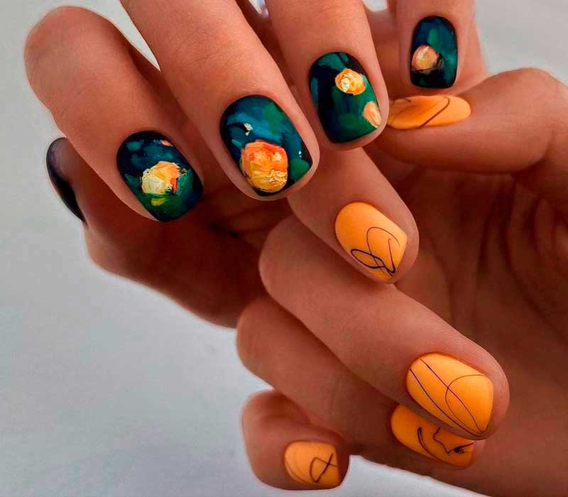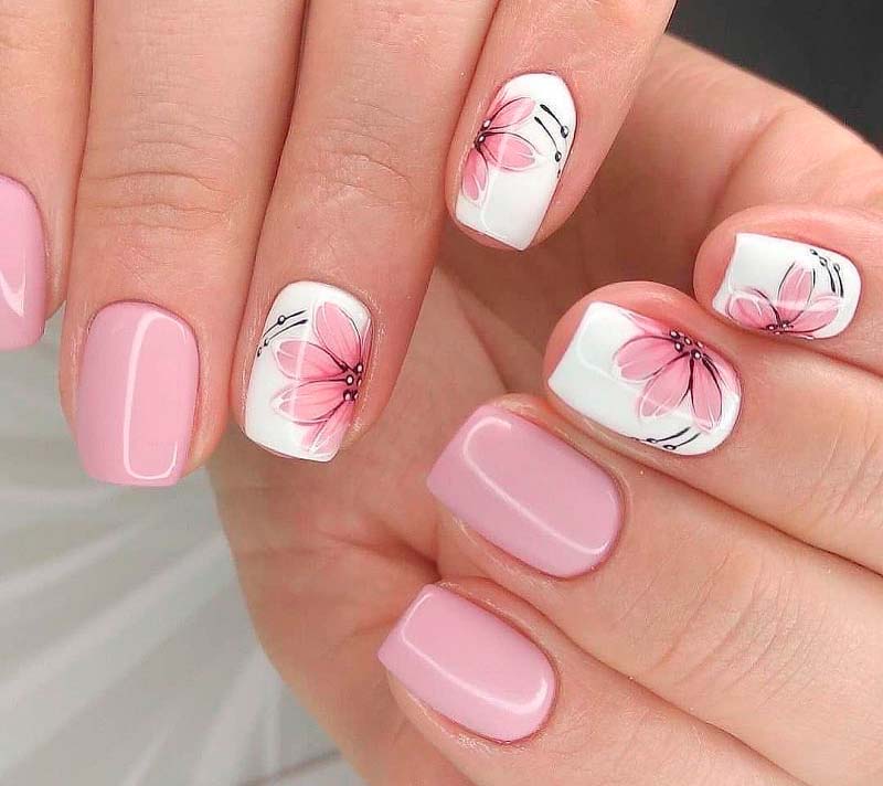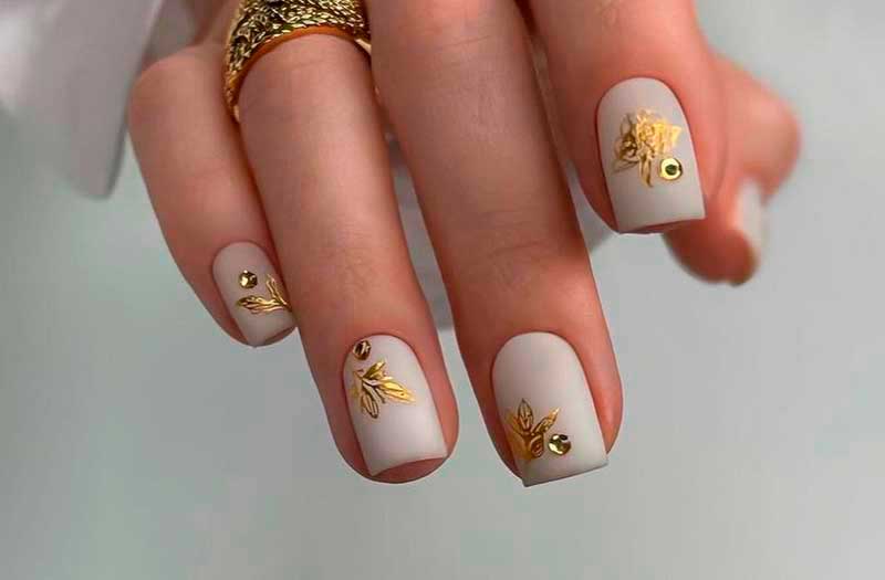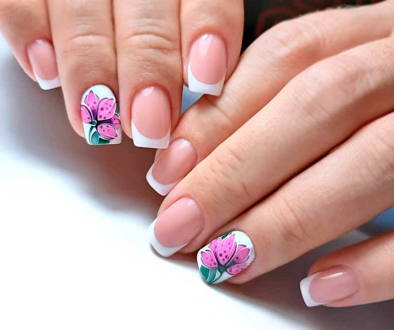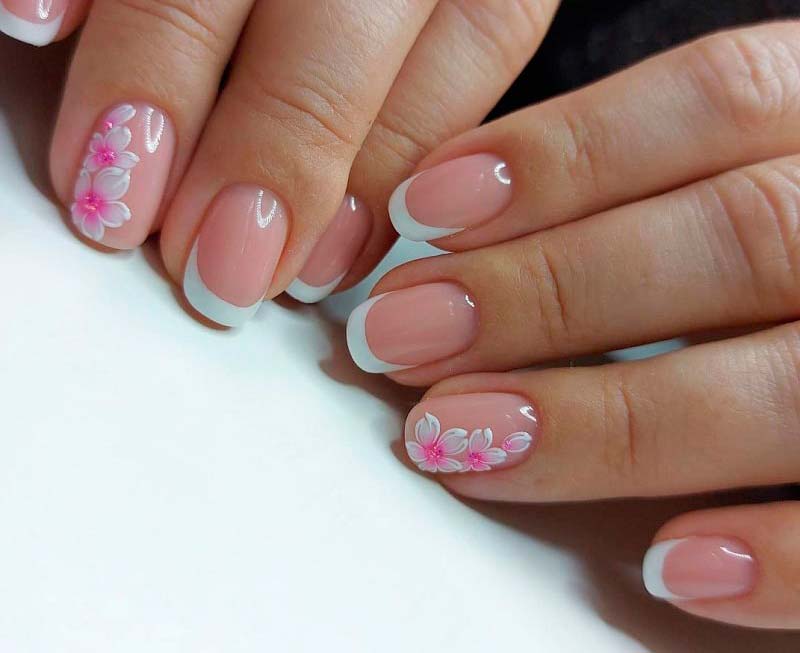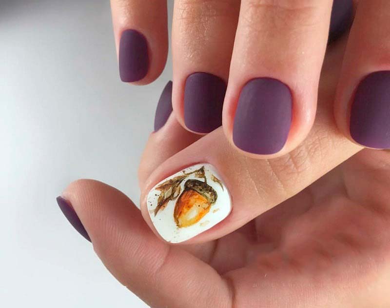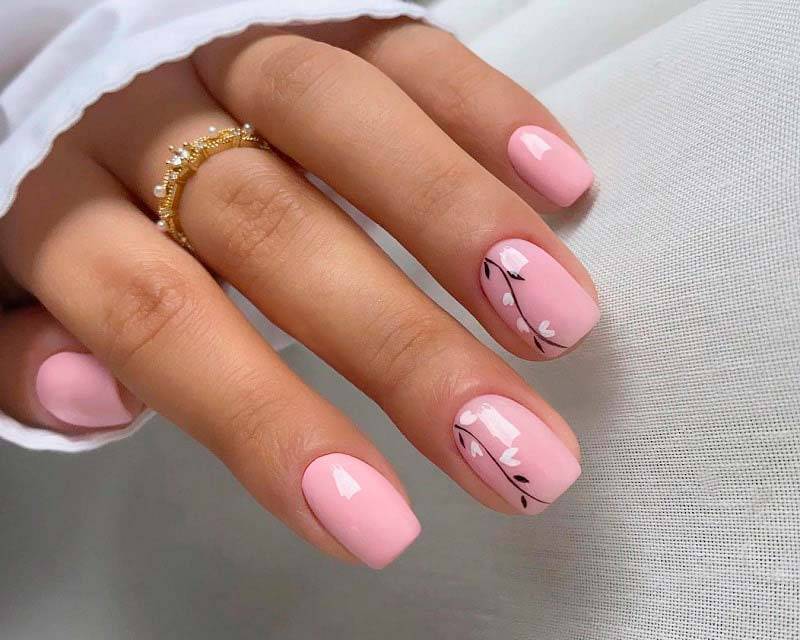 - Цветы. Еще один универсальный маникюр, который уместен в любое время года и на ногтях любой длины. Например сегодня такие узоры наносят под матовое топовое покрытие.