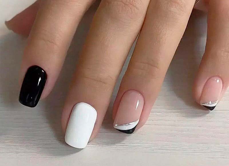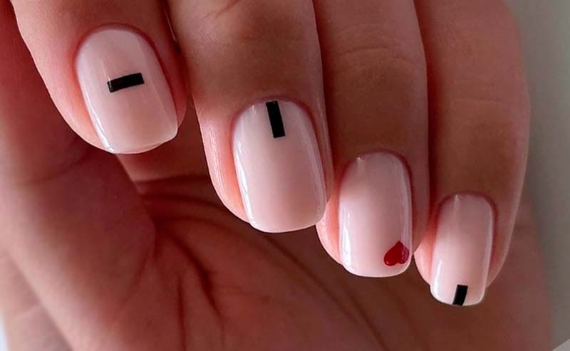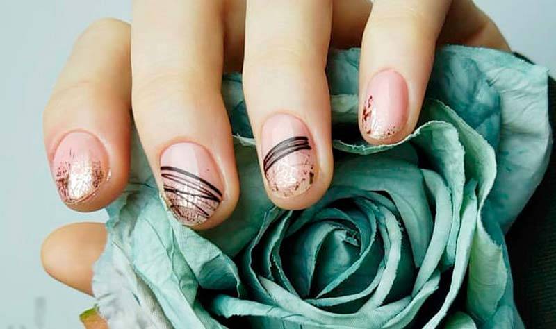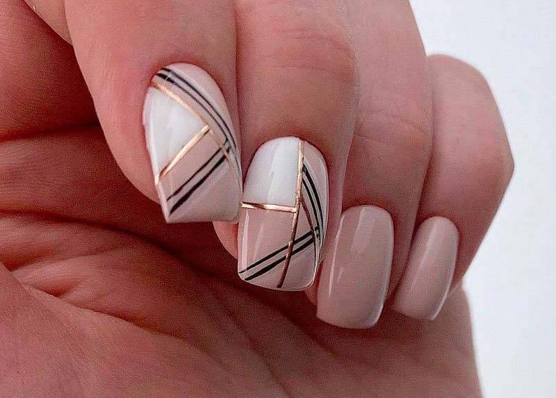 - Слайдеры, полоски, тонкие линии. Такой маникюр выглядит стильно, особенно, когда выполнен контрастным цветом на светлом или темном фоне.