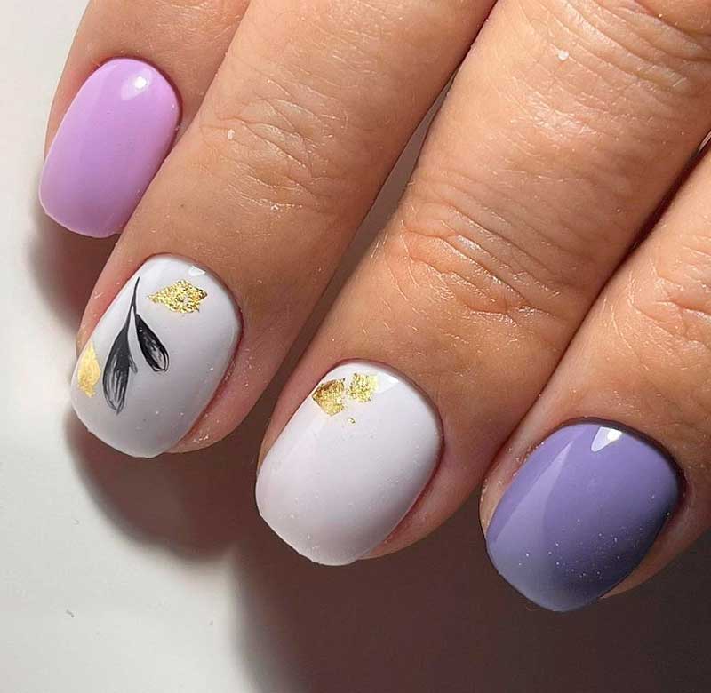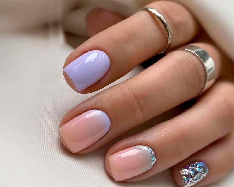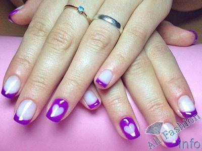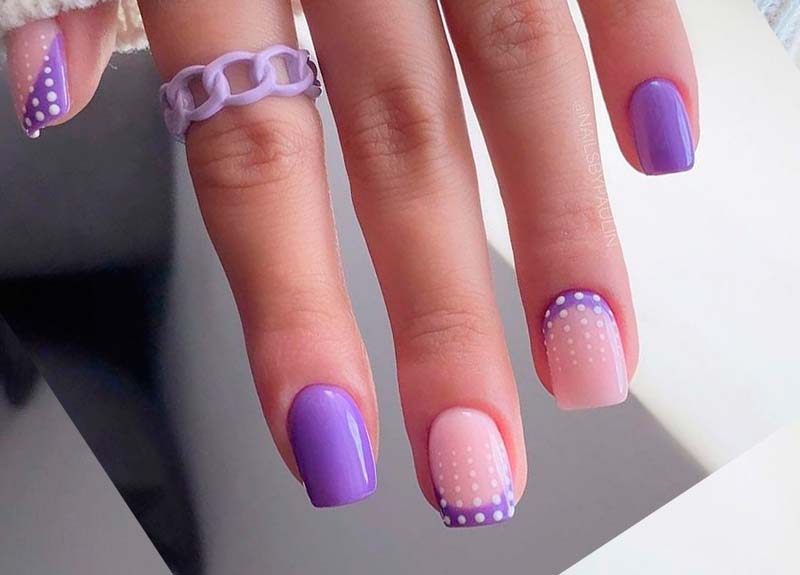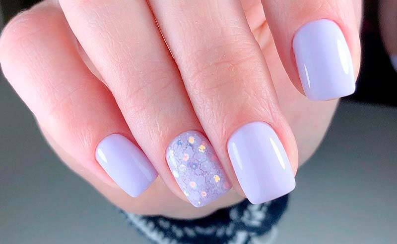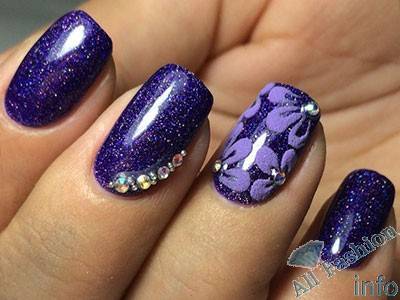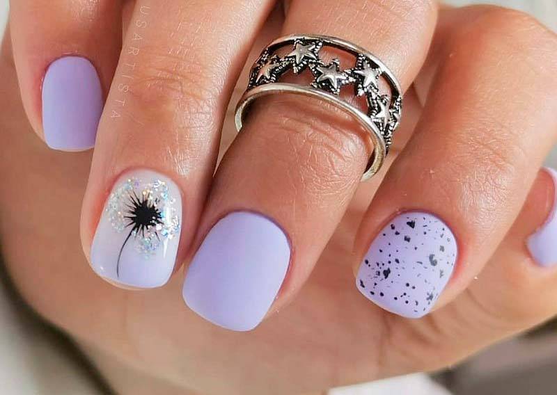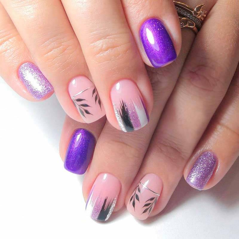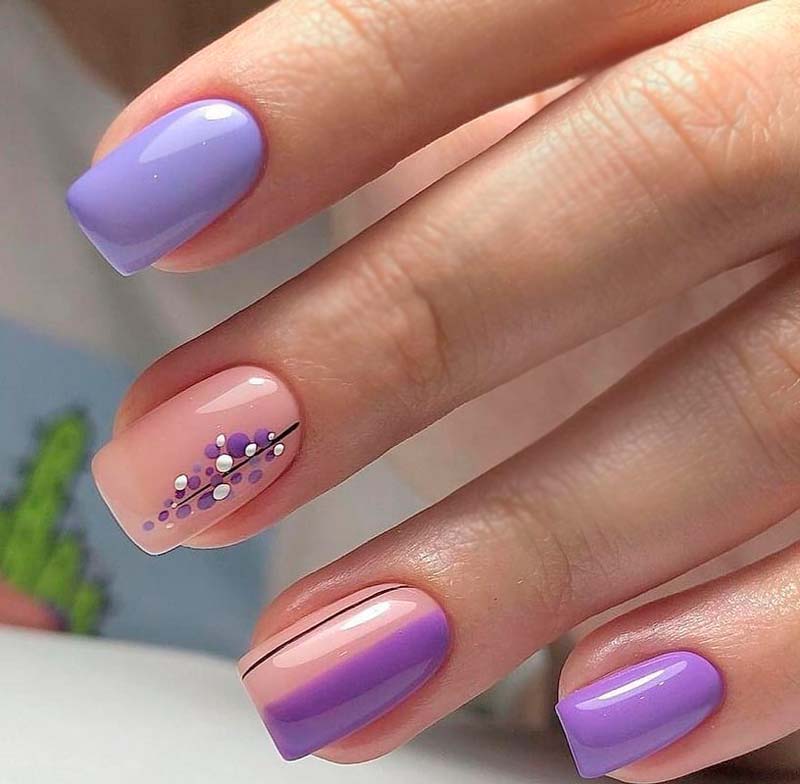 Сиреневый в своем исполнении на короткую длину схож с розовыми тонами. Задача та же, выполнение с различными дизайнами то же, но отличие лишь в том, что это будет не надоедливый розовый, а редкий сиреневый оттенок.