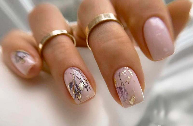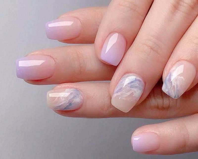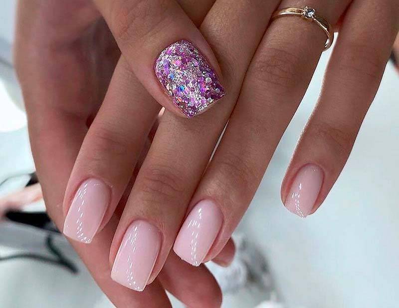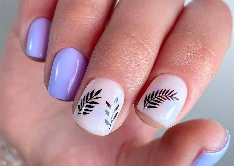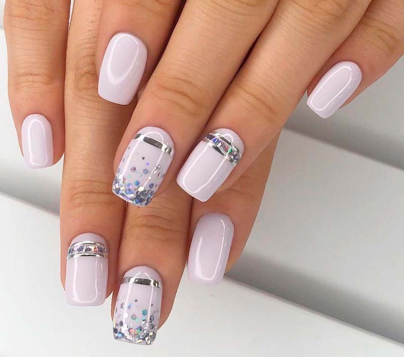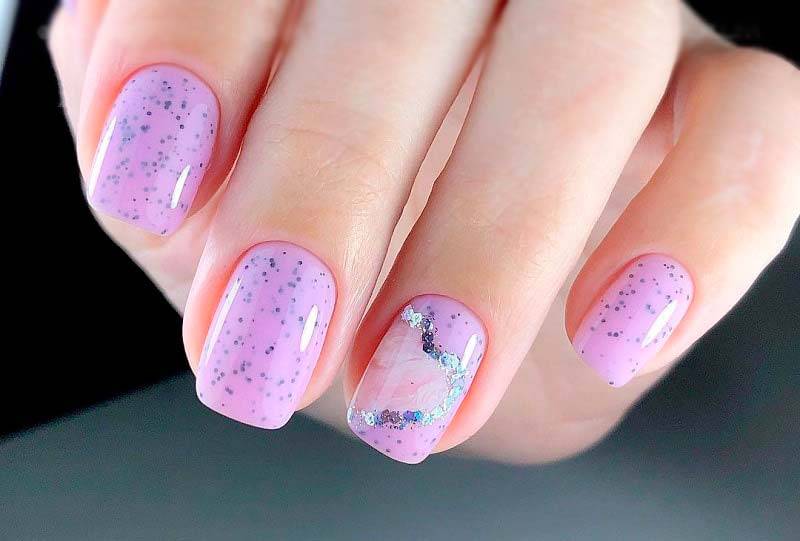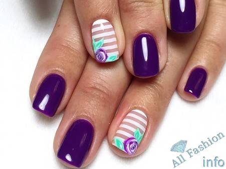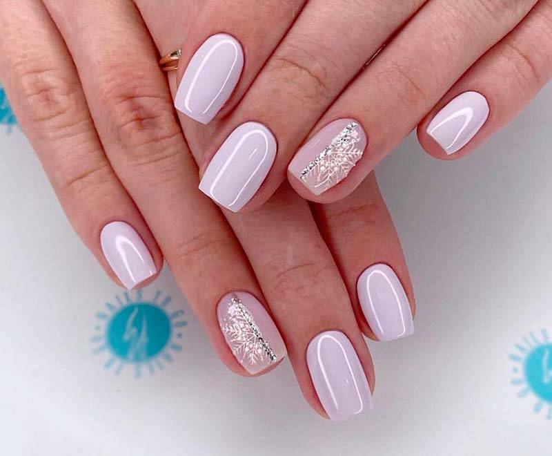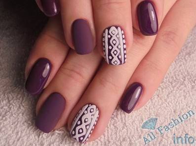 Сиреневый в своем исполнении на короткую длину схож с розовыми тонами. Задача та же, выполнение с различными дизайнами то же, но отличие лишь в том, что это будет не надоедливый розовый, а редкий сиреневый оттенок.