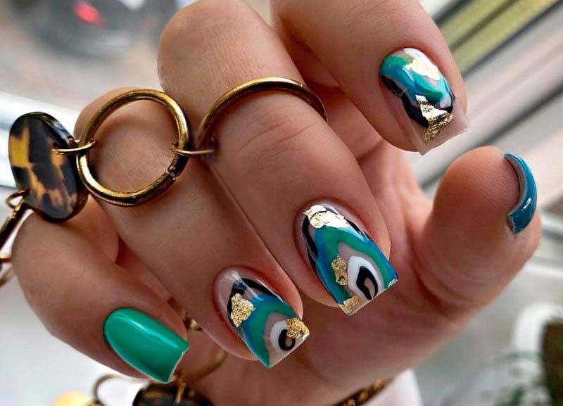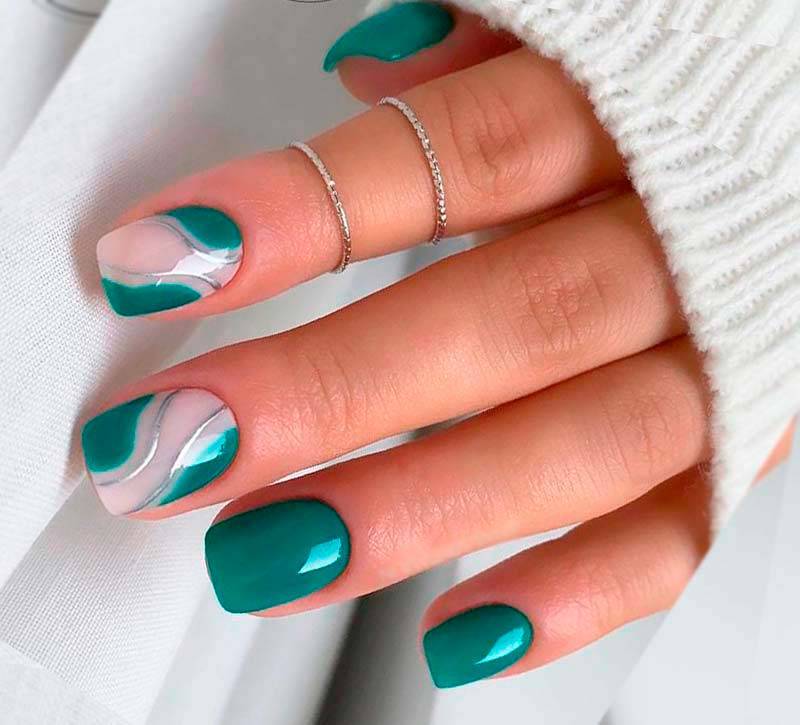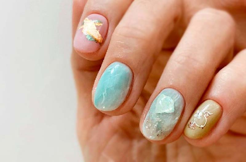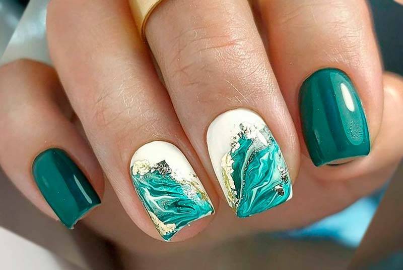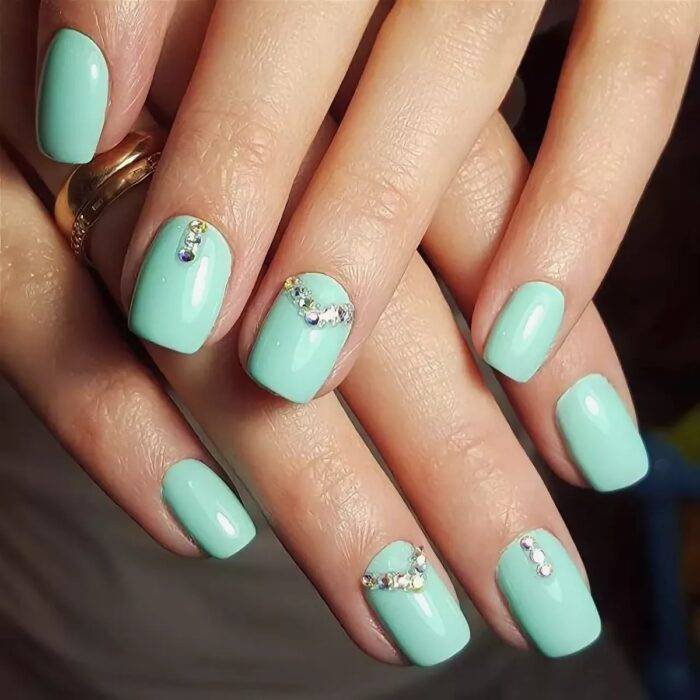 Бирюзовые тона на ногтях подойдут для любого сезона. Весной с добавлением цветов, летом в морской тематике, зимой в сочетании с росписью и осенью с добавлением блеска.