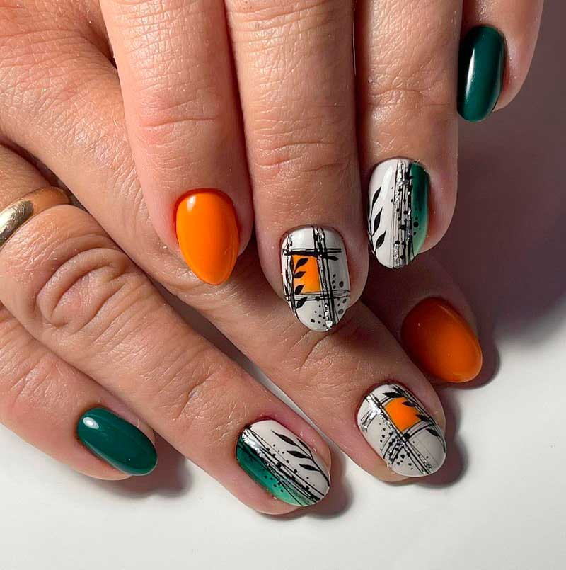 Несомненные фавориты сезона – абстрактные изображения: точки, кляксы, разводы – всего не перечислить. Они выполняются достаточно легко, но смотрятся при этом просто великолепно.