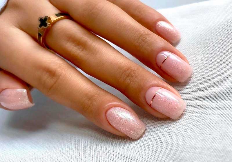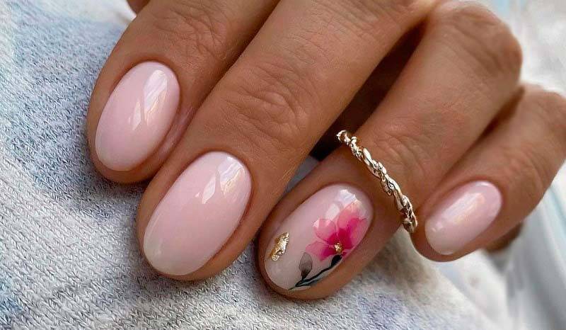 Маникюр на овальных коротких ногтях оформленный в цвете нюд – это всегда натурально и нежно, потому что в основном используются телесные, пудровые и пастельные оттенки