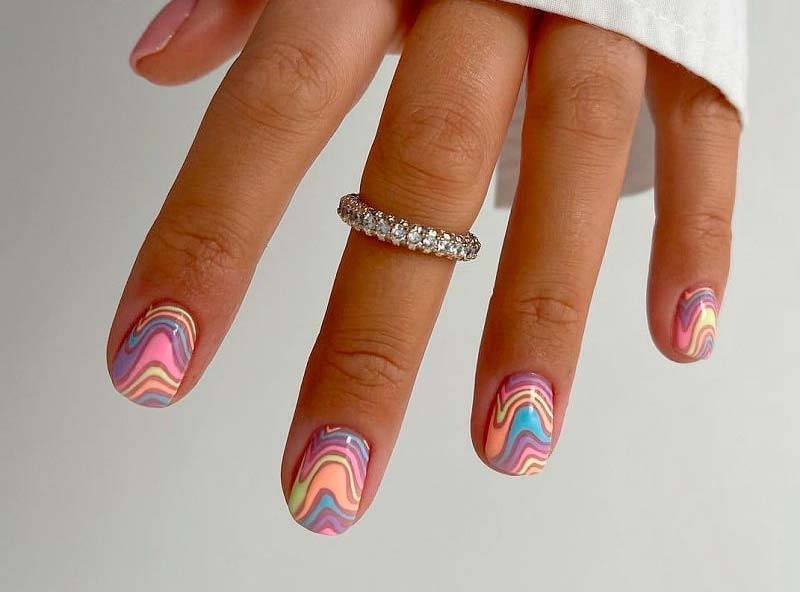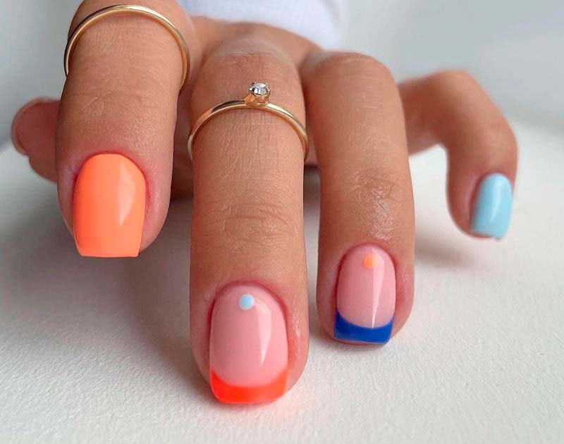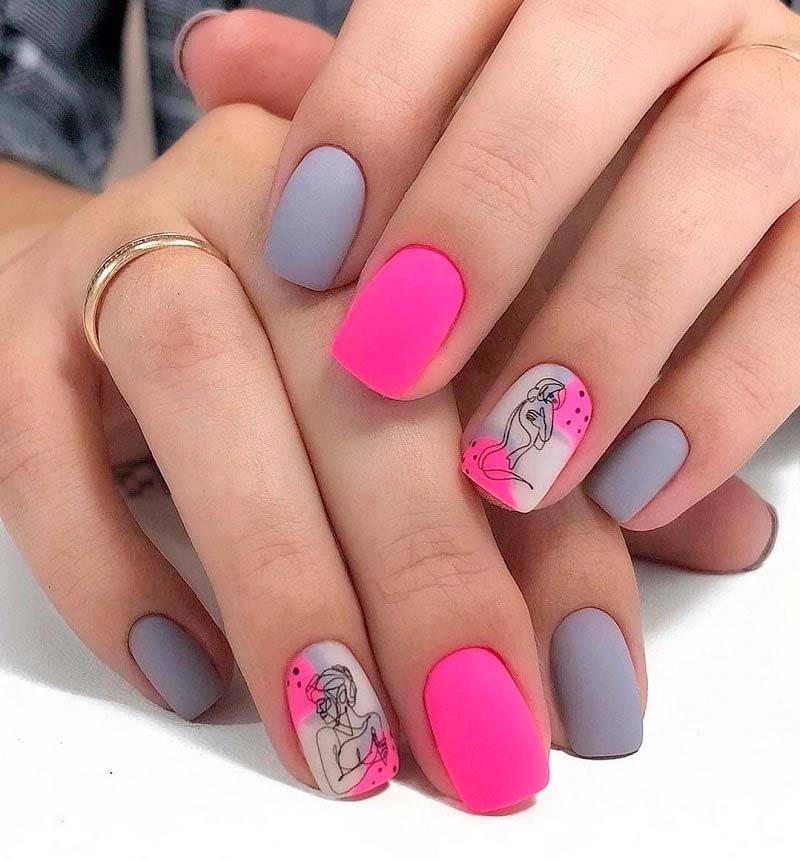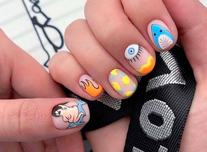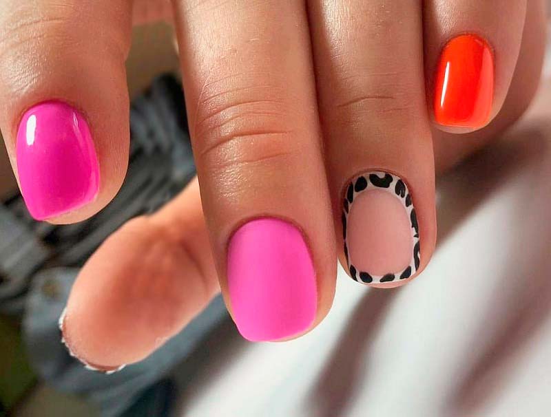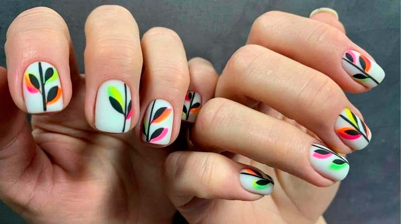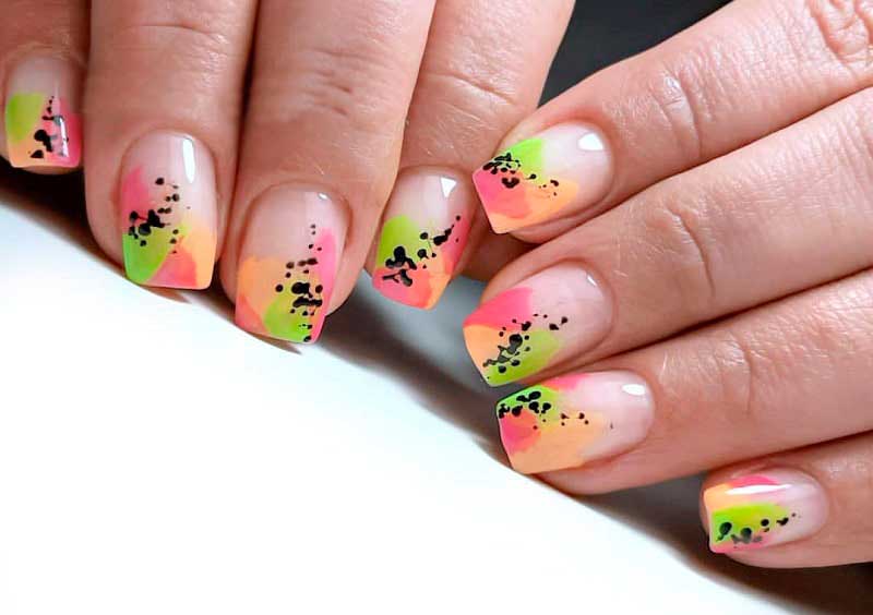 Такой маникюр выбирают самые яркие модницы, которые хотят быть в центре внимания. Дизайн моментально бросается в глаза, это один из самых крутых вариантов на лето, который вошел в новинки сезона. С ним лучше всего сочетаются надписи, геометрия и градиент. Пробуйте экспериментировать и воплощать в реальность свои самые неординарные идеи.