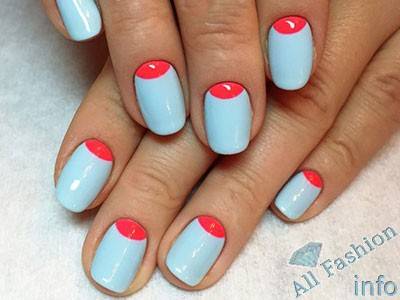Такой тип маникюра продержится примерно пять дней. Не обязательно в полной мере следовать классической идее, можно экспериментировать с цветами, что придаст вашему облику креативности.