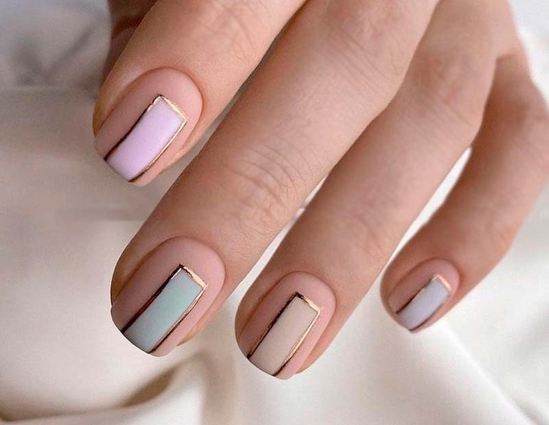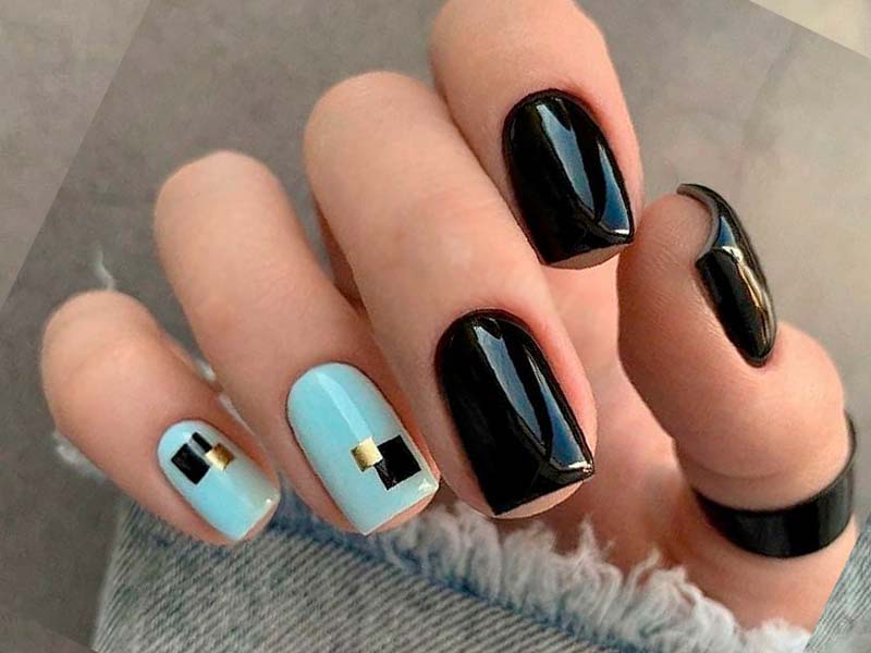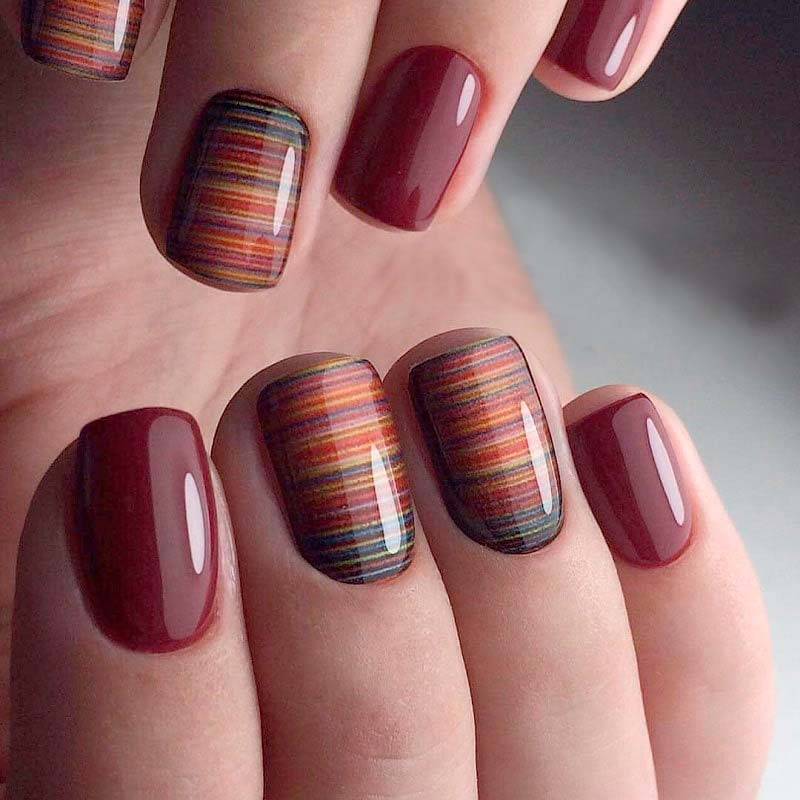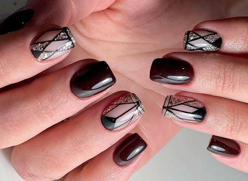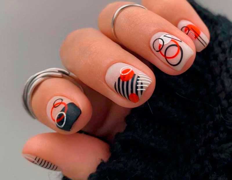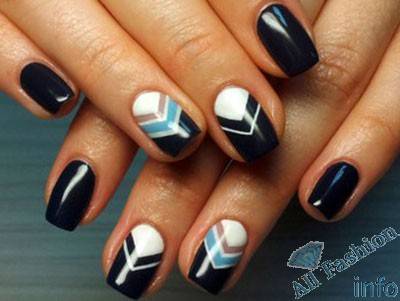 - Геометрия. Это универсальный вариант как для строго маникюра, так и яркого, эффектного. А благодаря обширной палитре становится возможно создавать интересные цветовые сочетания.