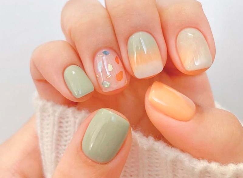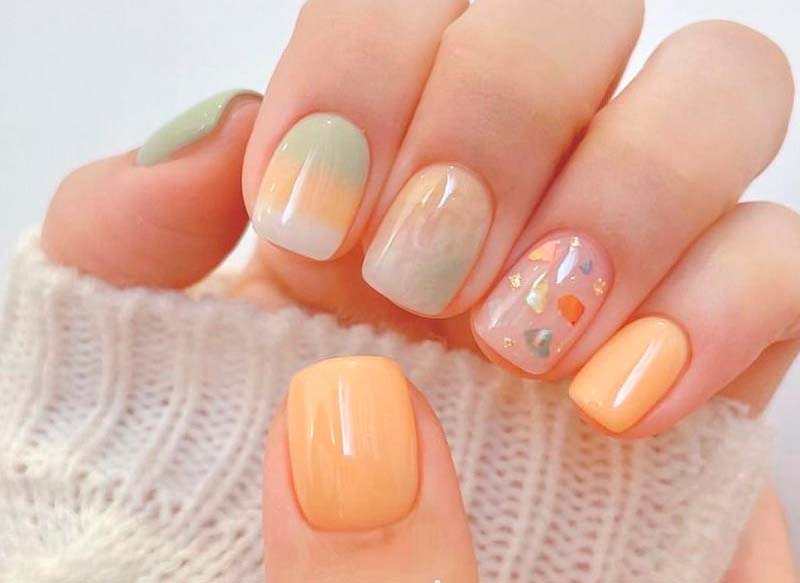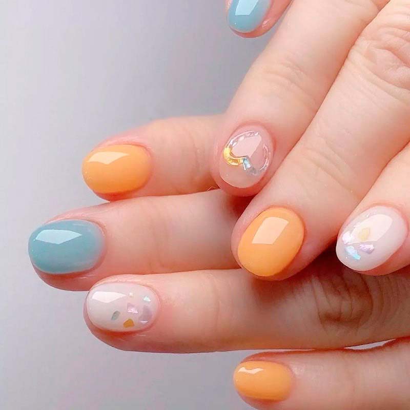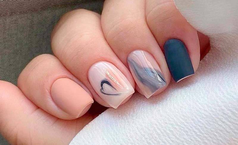 Создать утонченный и интересный вариант нейл-арта поможет цветовые акценты на ногтях. Например, можно использовать фоном нежно-пудровый оттенок, а дополнить дизайн дополнительно проработав ногти стилем «лунный маникюр» различными цветами