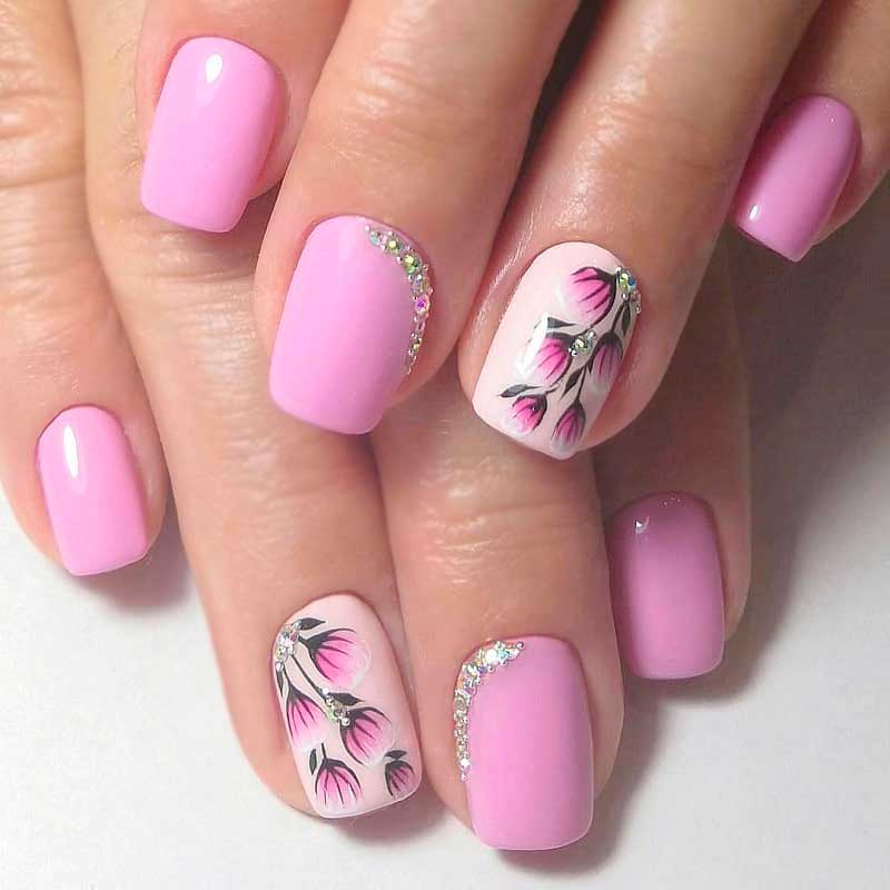 Романтизм такого оттенка трудно переоценить. Когда девушке хочется нежности, легкости и красоты, она начинает выбирать тот самый розовый из всех его оттенков. Нежно-розовый тон на короткую длину ногтевой пластины будет беспроигрышным вариантом.