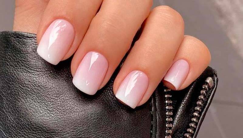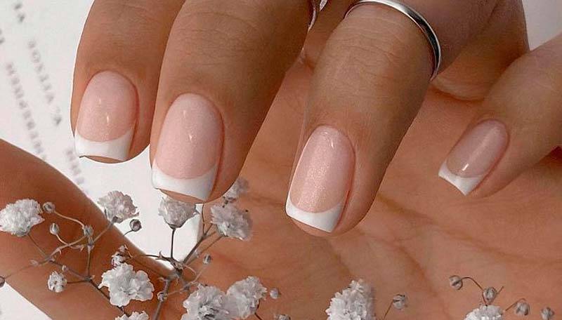Рассмотрим по шагам процесс воспроизведения французского маникюра на коротких ногтях: