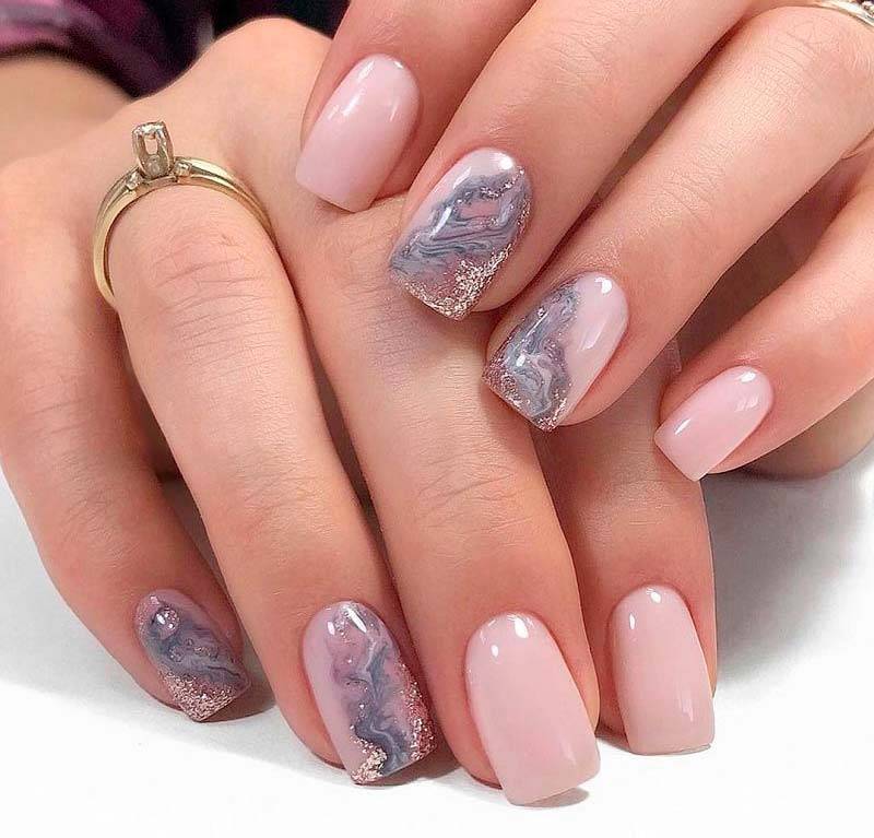Это нежный дизайн, который способен создать вокруг себя легкую ауру. Он смотрится бесподобно в сочетании с любой одеждой и обувью. С таким маникюром вы можете посещать серьезные мероприятия, деловые встречи, идти на свидание или даже в спортзал — и точно всегда будете на высоте.