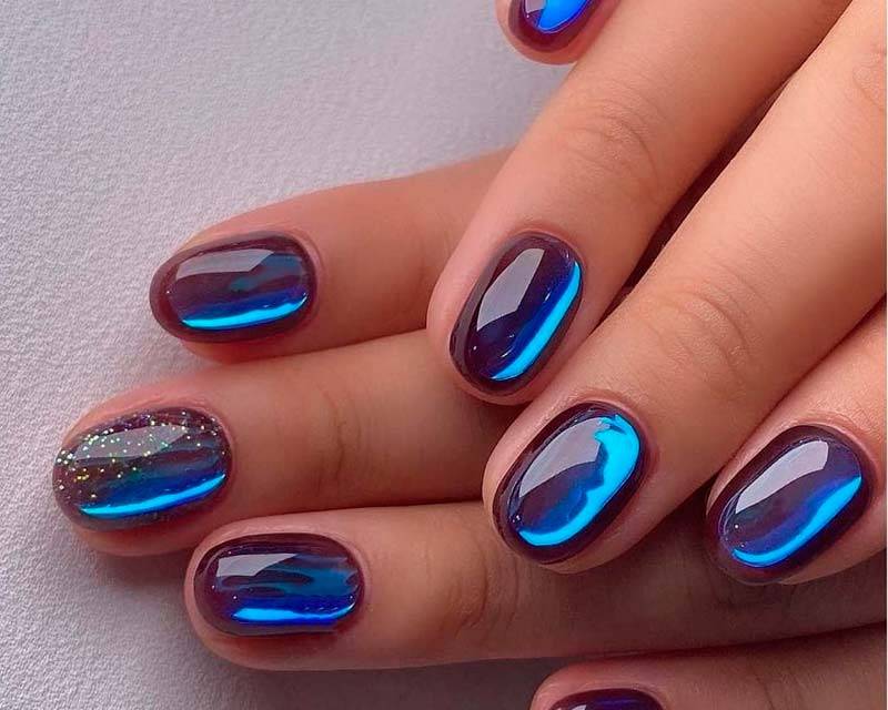- Светоотражающие ногти. Без сомнения самый тренд этого года. Конечно же прекрасно подходит для любого возраста, а так же хорошо держится на ногтях. Используется как самостоятельное покрытие или как часть дизайна.