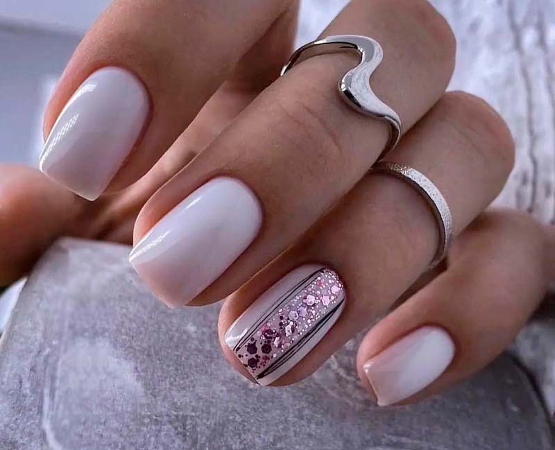 Классическим вариантом светлого маникюра всегда остается белый цвет. Пусть он и не практичный, зато смотрится действительно эффектно.