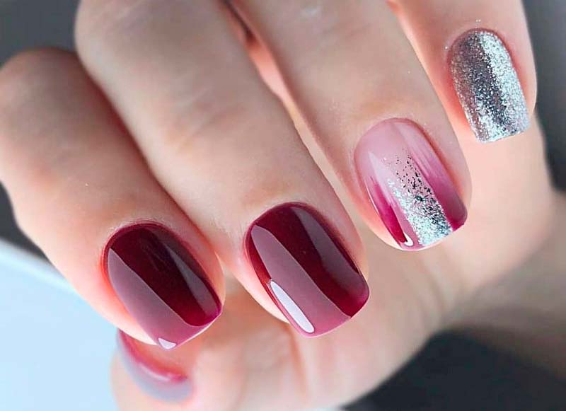 Этот цвет можно сочетать с другими оттенками и любыми техниками. Особенно интересен тандем малинового и серого, хорошо смотрится союз с черным, желтым и белым гель-лаком. Самый красивый маникюр можно создать при помощи техники омбре. Плавные переходы оттенков всегда пользовались спросом у дам благодаря эстетичному виду. С ним вы можете смело отправляться на подиум.