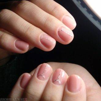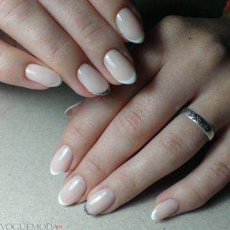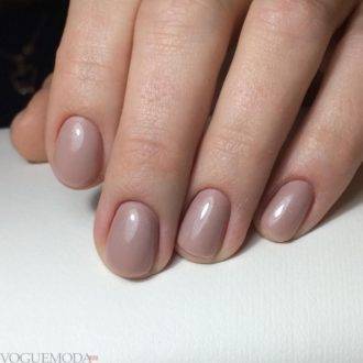 Маникюр на овальных коротких ногтях оформленный в цвете нюд – это всегда натурально и нежно, потому что в основном используются телесные, пудровые и пастельные оттенки