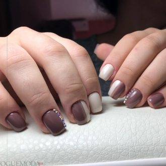 Внимание нейл-дизайнеров привлекли не только оттенки, ставшие классикой. Новинками того сезона стали ногти, окрашенные в кофейные тона. Использовать кофейные оттенки можно как в однотонном маникюре, так и комбинировать в разных вариациях модного нейл-дизайна