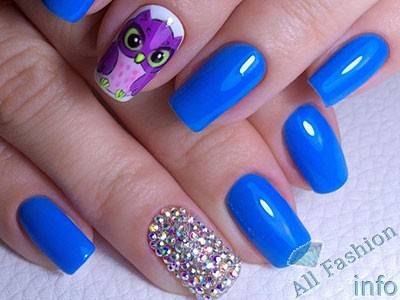 - создайте дизайн — рисунок, стразы, наклейка, растяжка цвета, фольга и др. Все то, что вы выберите для своего стильного маникюра. Не забывайте, что вы можете комбинировать техники. Даже для коротких ноготков;