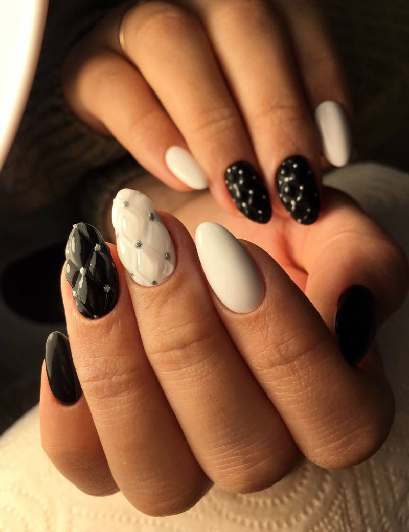 контрастные цвета: черные и белые полосы являются ключевыми элементами маникюра зебра