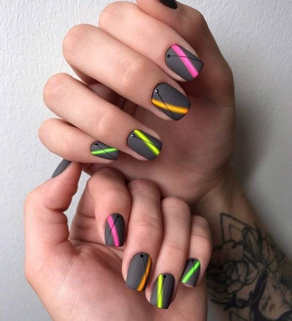 - яркие и кислотные ногти визуально уменьшают ногтевую пластину;