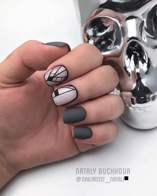 Маникюр в стиле гранж на короткие ногтевые пластины