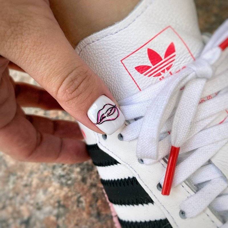 Если душа требует чего-то необычного и оригинального, при помощи тонкой кисточки или трафаретов можно нанести на ногти рисунки в виде отпечатков губ, сумочки или женской туфельки. А так как фантазии нет предела, ногти можно украсить и цветочным принтом, стразами, блестками и другими вариантами оформления — и это без сомнения будет стильно и оригинально.