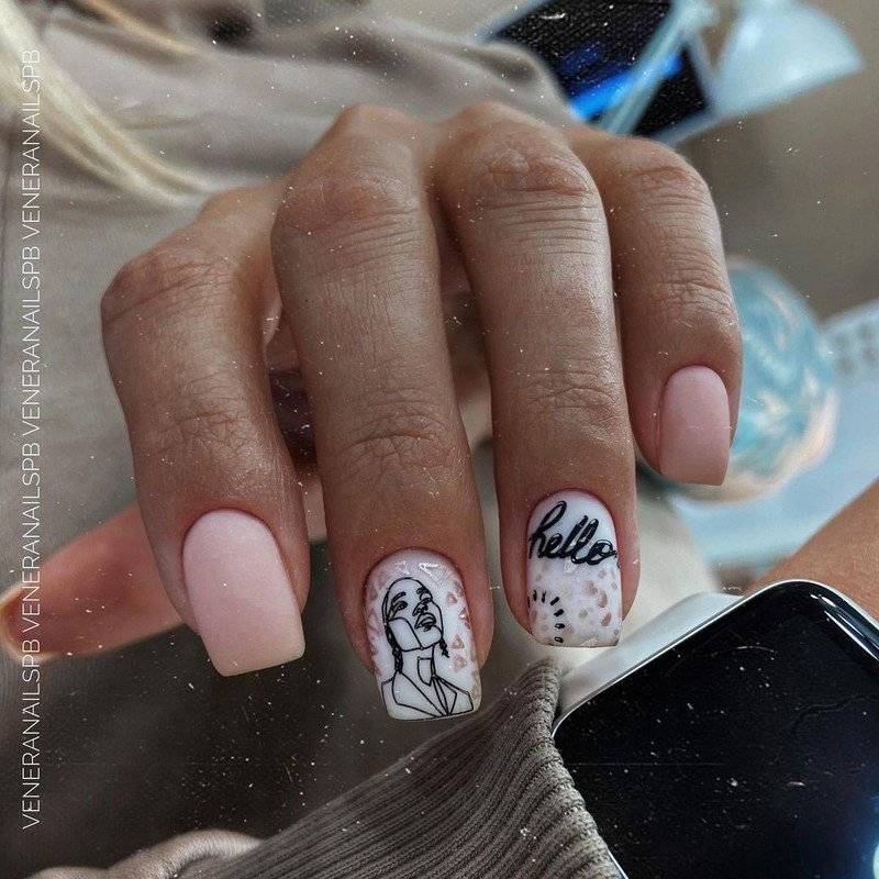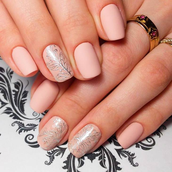Дизайн нюдового цвета – отличный вариант для девушек любого возраста и профессии. Он хорошо смотрится с длинными прямыми ногтями с матовым покрытием.