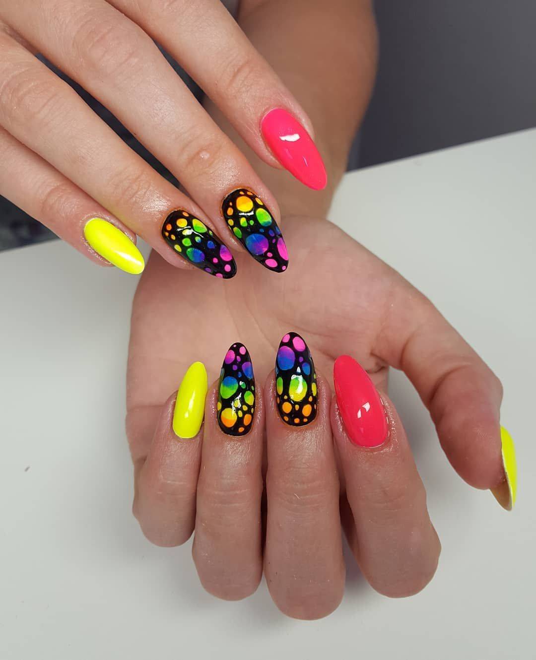 - яркие и кислотные ногти визуально уменьшают ногтевую пластину;