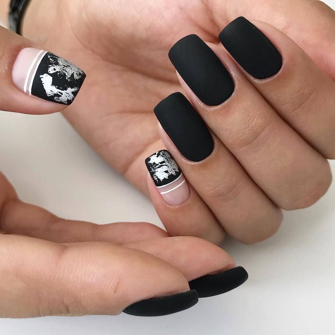 Черный гранж-маникюр — это гармоничное сочетание глубоких и темных оттенков с матовой текстурой и стразами в тон покрытия, дизайн с воском, глиттером и яркими надписями, а также дизайн с металлическими полосками, фольгой, цепочками и другими металлическими украшениями, которые способны подчеркнуть выбранное направление и привлечь внимание. Если черная ногтевая пластина кажется вам слишком мрачной, вы всегда можете освежить ее покрытие абстрактными рисунками в виде тумана, полос или штрихов, или интересно совместить несколько техник на одной руке.