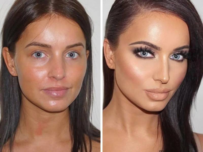 При крупном носе нужно соблюдать пропорции в макияже. Если выделить глаза и губы, то лицо станет гармоничным, а крупный нос будет казаться более эстетичным.