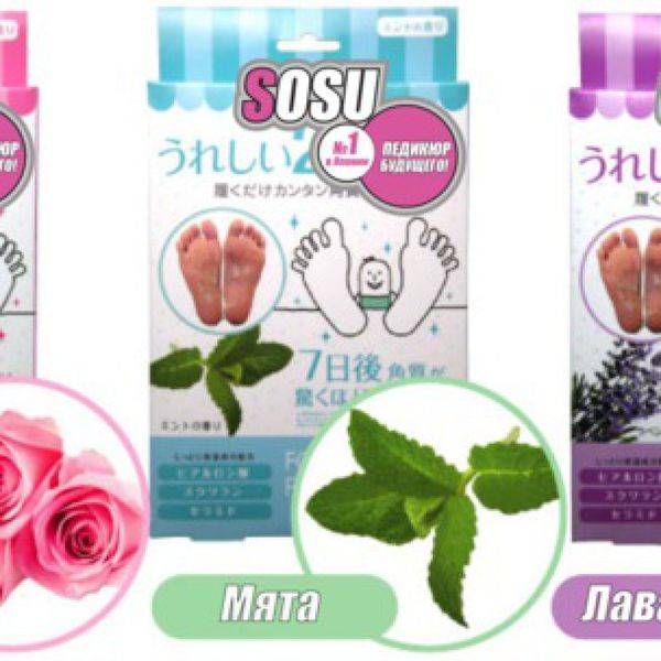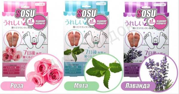 Чтобы процедура не потеряла своей эффективности, следует внимательно изучить инструкцию и следовать всем указаниям. В стандартный комплект входят: две пары полиэтиленовых носочков с активным составом и специальный скотч-фиксатор. Производители выпускают товар с различными ароматами: лавандой, розой, мятой, молоком.