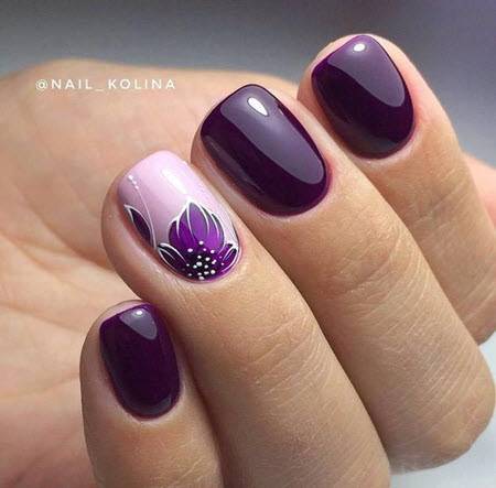 Уже несколько сезонов подряд фиолетовый маникюр на пике популярности в осенне-зимний период. Красивый фиолетовый маникюр сочетается со многими техниками и видами дизайна: различными рисунками, пайетками, камнями, фольгой, камифубуки, платками.