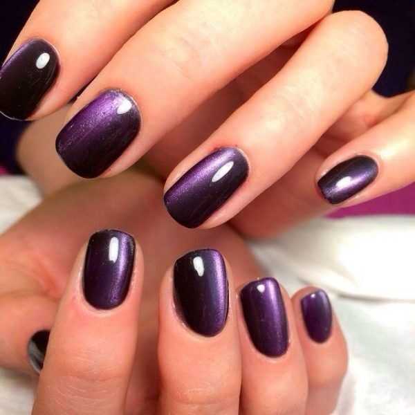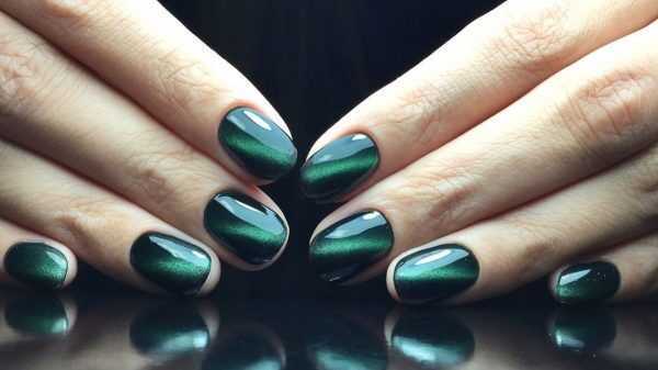 Кошачий глаз. В свое время дизайн под названием «кошачий глаз» был на пике моды, ведь женщинам очень нравилось рассматривать на своих ноготках необычные переливы цвета. Сегодня этот вариант декора устарел и мастера перестали предлагать его своим клиенткам.
