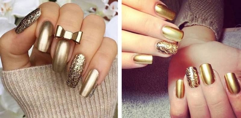 Для теплого цветотипа модниц лучше подойдет золотой оттенок лака. Он актуален и в том случае, если модница предпочитает золотые украшения.
