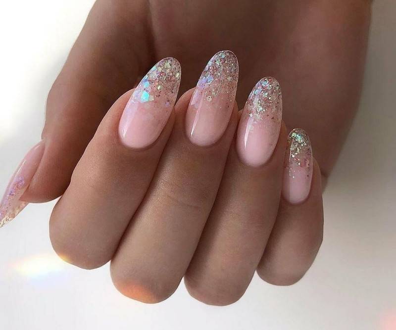 Хотите удивить гостей и друзей? На помощь придет градиент блеском, вертикальный нейл-арт в сочетании с омбре, хрустальный и даже зеркальный градиент. Будьте уверены, что такое смелое решение не оставит ваш образ незамеченным.