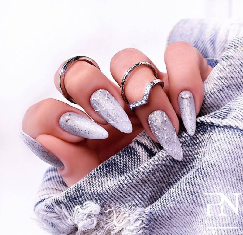 Блестящее жидкое серебро — это праздник. С помощью глиттера или лака можно создать праздничный маникюр на Новый год. Причем вы можете преобразить скучный офисный дизайн всего за пару движений.