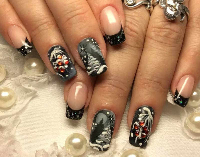 Увлекательные идеи новогоднего маникюра для наращенных ногтей