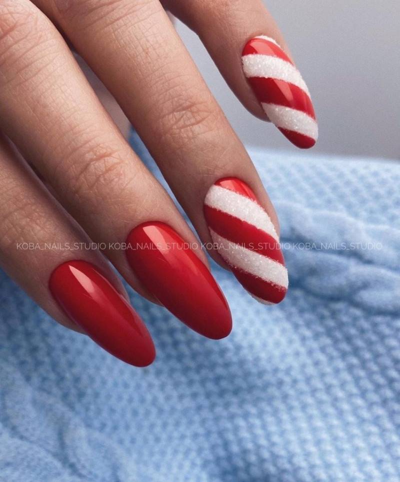 Леденцовый дизайн новогоднего маникюра