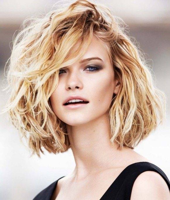 Для средних или длинных густых локонов удачный выбор — закруглённая форма с более короткими центральными прядками и длинными боковыми.