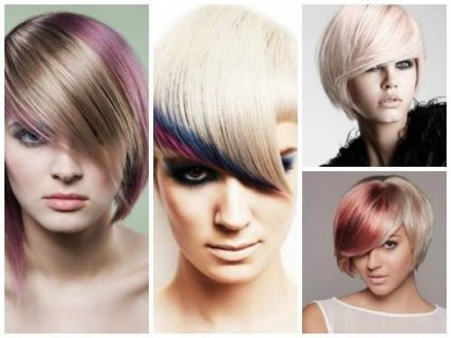 В нынешнем сезоне очень актуально окрашивание челки. Для красивой укладки можно использовать этот прием. Окрас может быть яркий или в виде мелирования. Окрасить можно, как только челку, так и полностью все волосы.