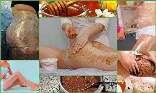 - Предварительно очищаем кожу скрабом. Рецепты скрабов те же, что и при горячем обертывании.