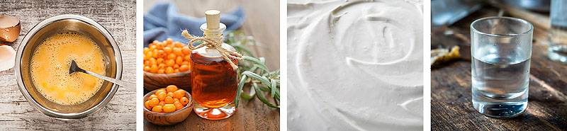 Для сухой кожи и с явными признаками старения готовится специальный питательный лосьон. Сначала необходимого взбить очень свежее куриное яйцо до пены. Затем вводится 1 ч. л. масла облепихового и 200 мл сливок. В вымешанное средство добавляется 100 мл водки.