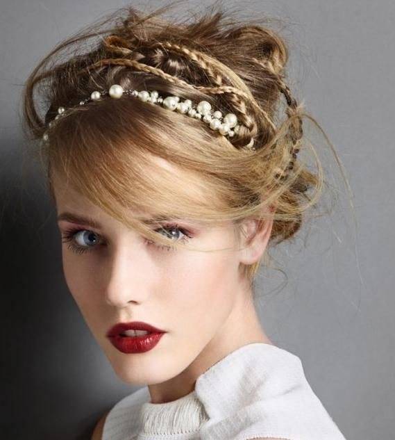 - Можно использовать ободок для греческой прически, которая состоит из высоко поднятых прядей.