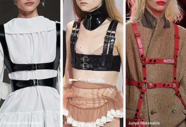 Уже давно эта часть военного снаряжения перекочевала в мир моды. Искусно переплетенные ремешки надевают поверх платьев, рубашек и блузок. Дизайнеры пошли еще дальше и предлагают нам носить портупею поверх пальто. Надо сказать, что на первый взгляд это выглядит весьма непривычно, но в целом образ смотрится очень современным.
